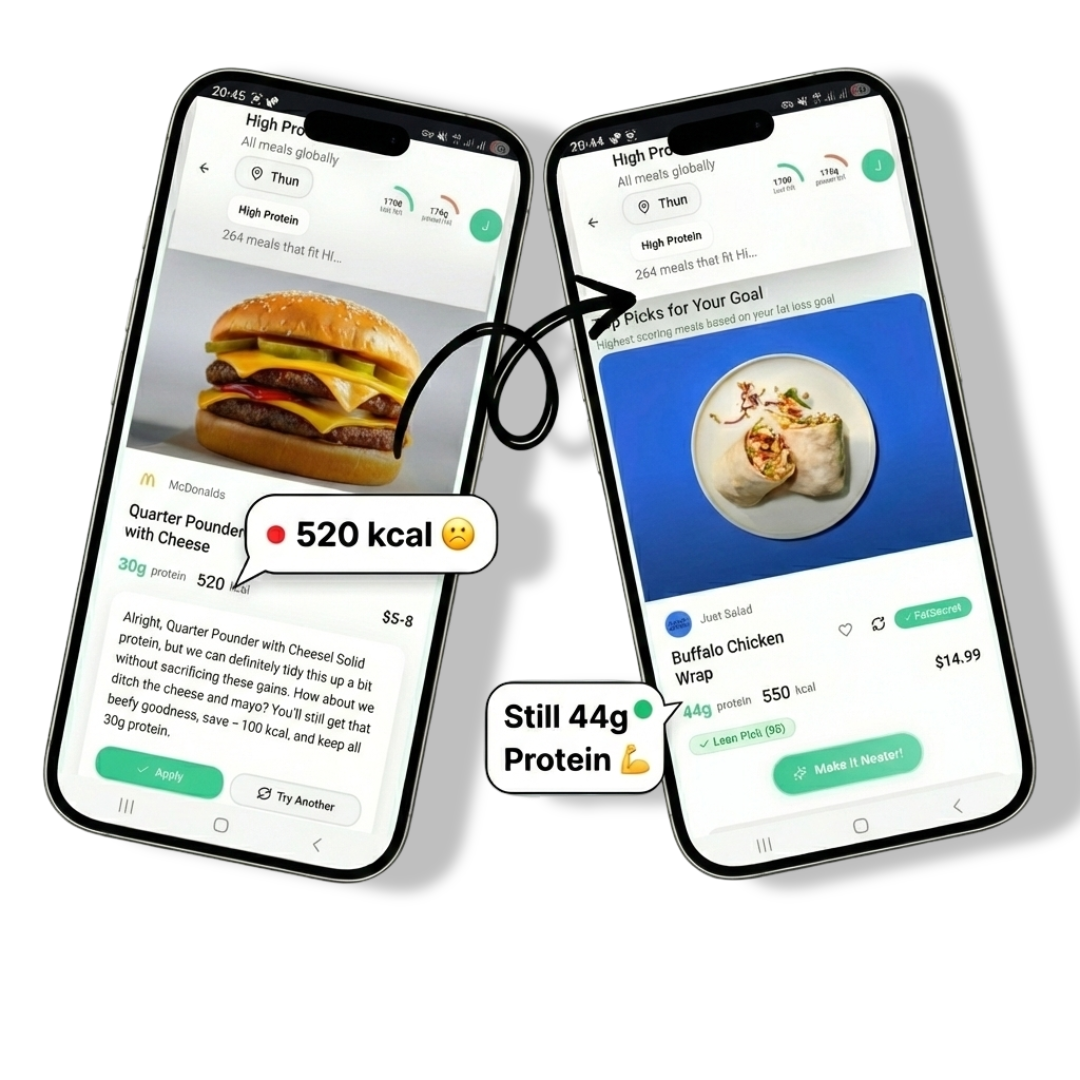 Set your nutrition goals, browse meals that match your macros, and order from your favorite restaurants.